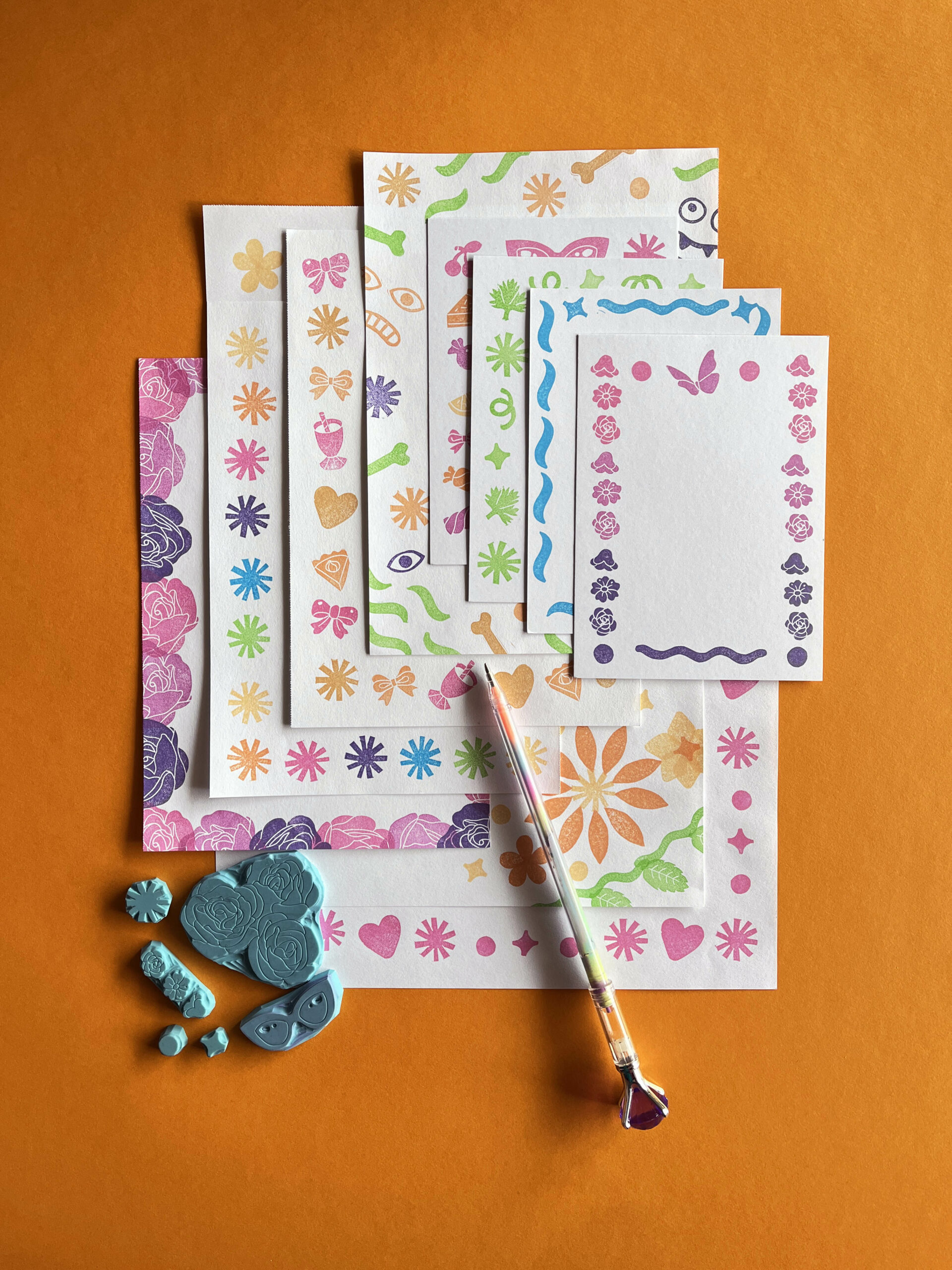 Venez expérimentez avec des tampons de toutes formes, des compositions délicates ou funky pour décorer votre papier à lettres, vos cartes d’anniversaire, d’invitation, remerciement ou toute autre occasion qui mérite sa petite carte 🙂